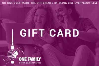 The gift cards can be used for any of our ticket categories and stay valid for three full years. That means plenty of time to pick the perfect moment to join us at the Berlin Salsacongress.